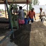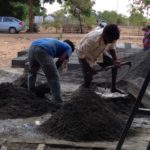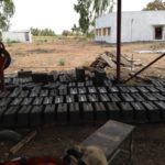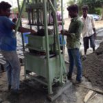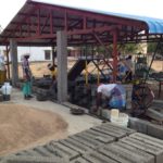 Het maken van de stenen gaat bijna helemaal handmatig; het mengen van het materiaal, het vullen van de pers waarin de stenen worden gevormd, het verplaatsen en te drogen leggen. Alleen bij het persen in de mal wordt een machine gebruikt. Als er een voorraad is kan er verder worden gebouwd.