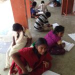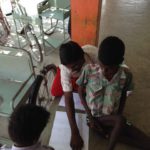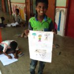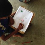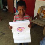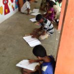 Deze ochtend even iets anders dan school of fysiotherapie. Alle kinderen gaan aan de slag met papier, potlood en stiften. Je kunt zien dat ze ervan genieten.